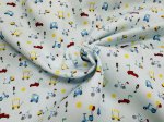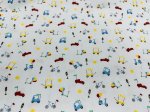 > Cars Wagons Bicycles Children's Print on Blue Fabric by Fabric Finders